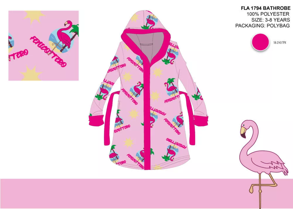 Accappatoio in microfibra con cappuccio per bambini fenicotteri - rosa chiaro - 122-128